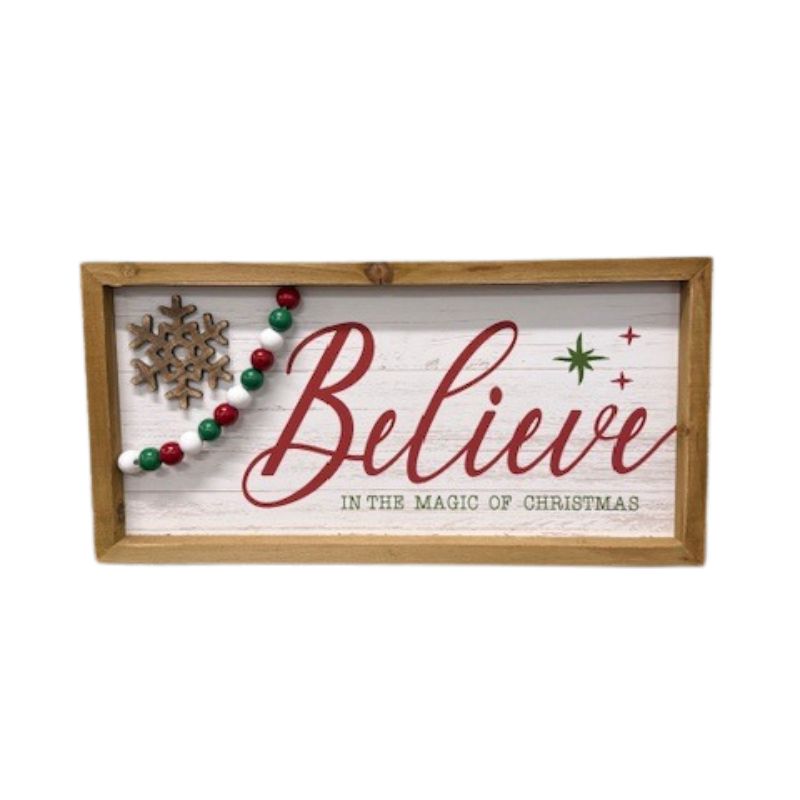 Spread holiday spirit with these charming wooden signs featuring the uplifting messages "Believe" and "Jingle." Measuring 15.75 inches, these rustic pieces bring warmth and whimsy to your festive décor. Perfect for displaying on mantels, shelves, or entryways, they capture the magic and joy of the season with timeless appeal. The natural wood construction adds authentic charm to any holiday setting, while the meaningful words inspire wonder and celebration. An ideal choice for creating a cozy, festive atmosphere that reminds everyone of the season's most cherished moments.