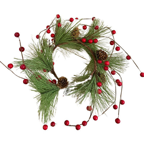 Pine & Red Berries Candle Ring 13"